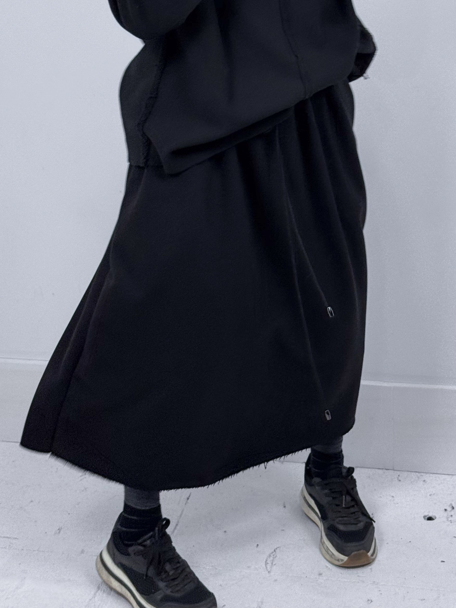 The Sierra Skirt is a full-length, sculptural fleece skirt designed for warmth, movement, and modern ease. Cut from thick, ultra-soft brushed cotton fleece, it falls in a clean column with beautiful weight while still feeling effortless. The adjustable drawstring lets you style it high or low on the waist, and deep side pockets add everyday practicality. Raw-edge finishes give the Sierra its signature understated edge.