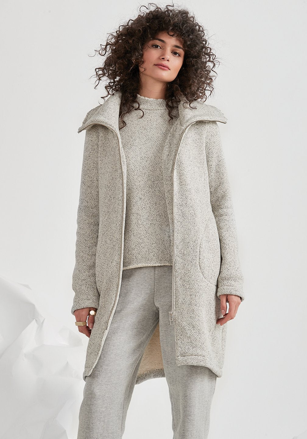 Zip up jacket with oversized stand up collar and deep patch pockets