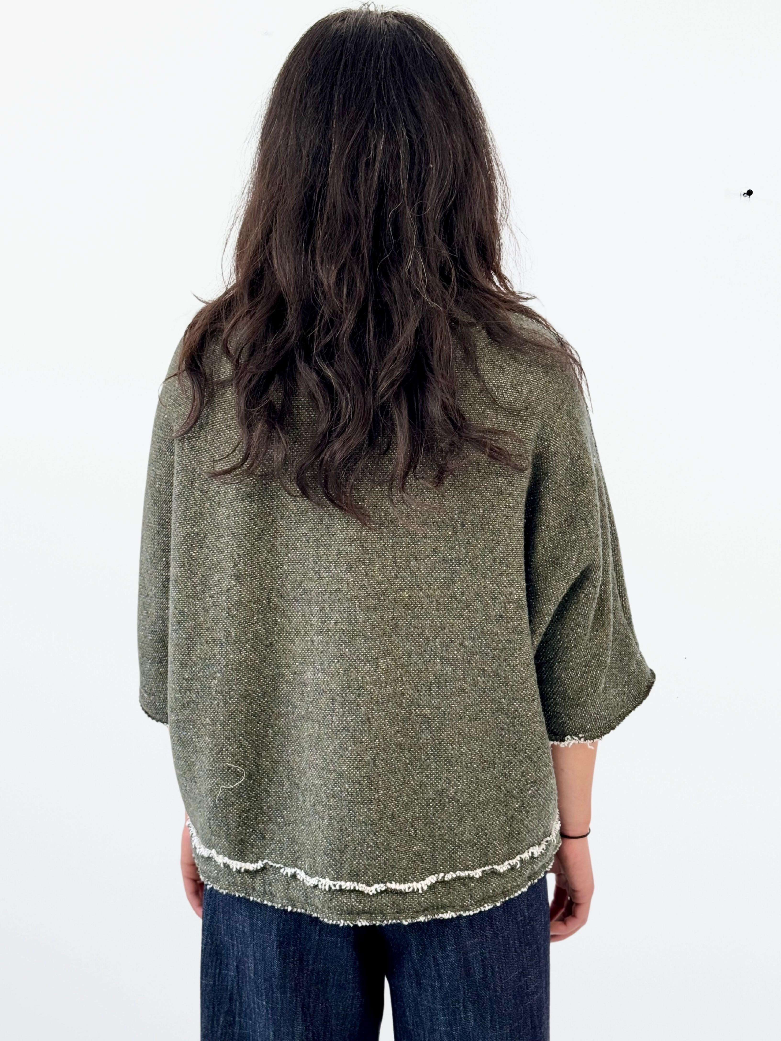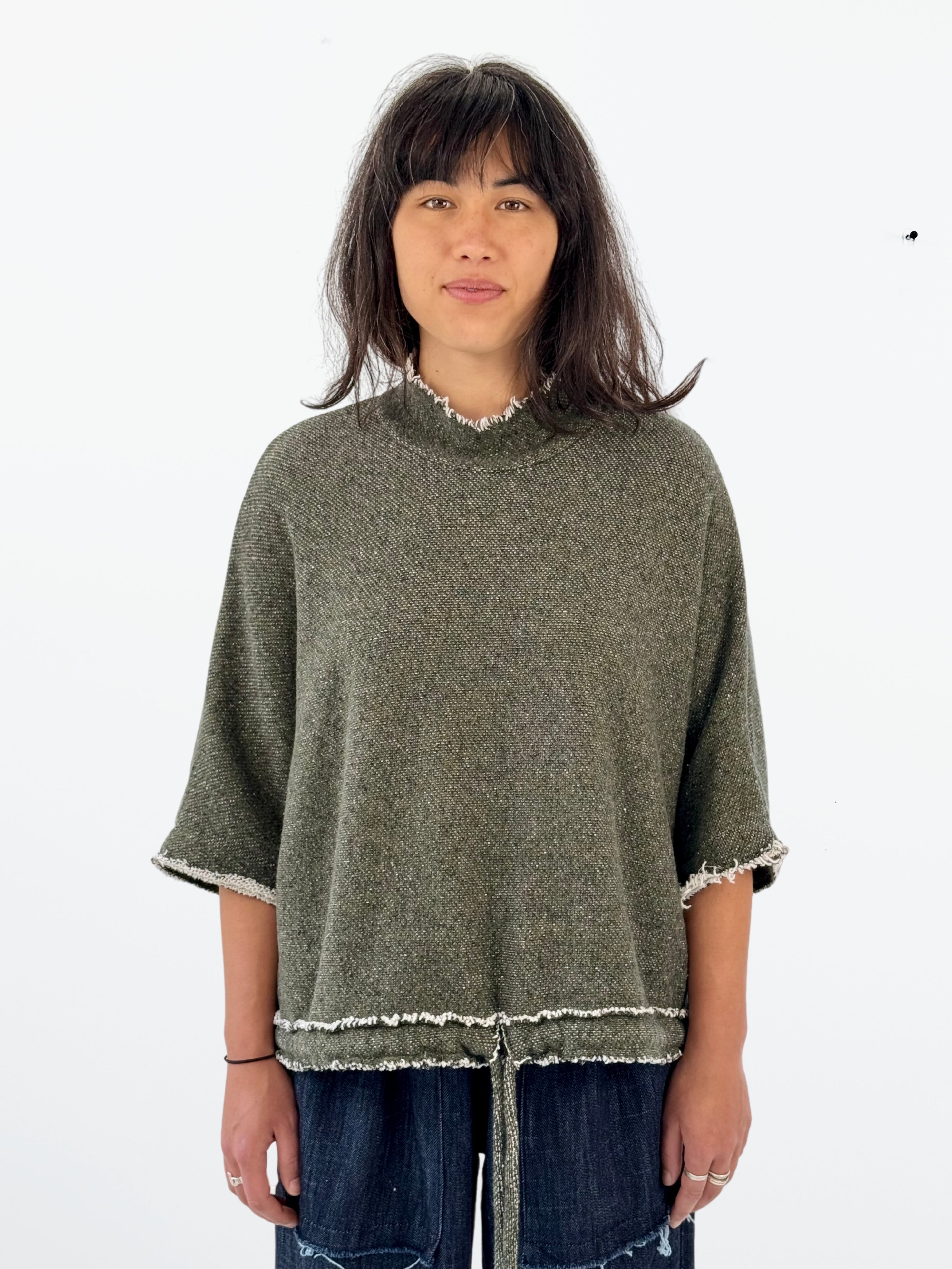 Crafted from our signature big loop terry, this cropped pullover features a drawstring and 3/4 sleeves with a delicately frayed edge at the neck, sleeves, and hem. Its versatile and easy fit makes it a must-have for any wardrobe.
