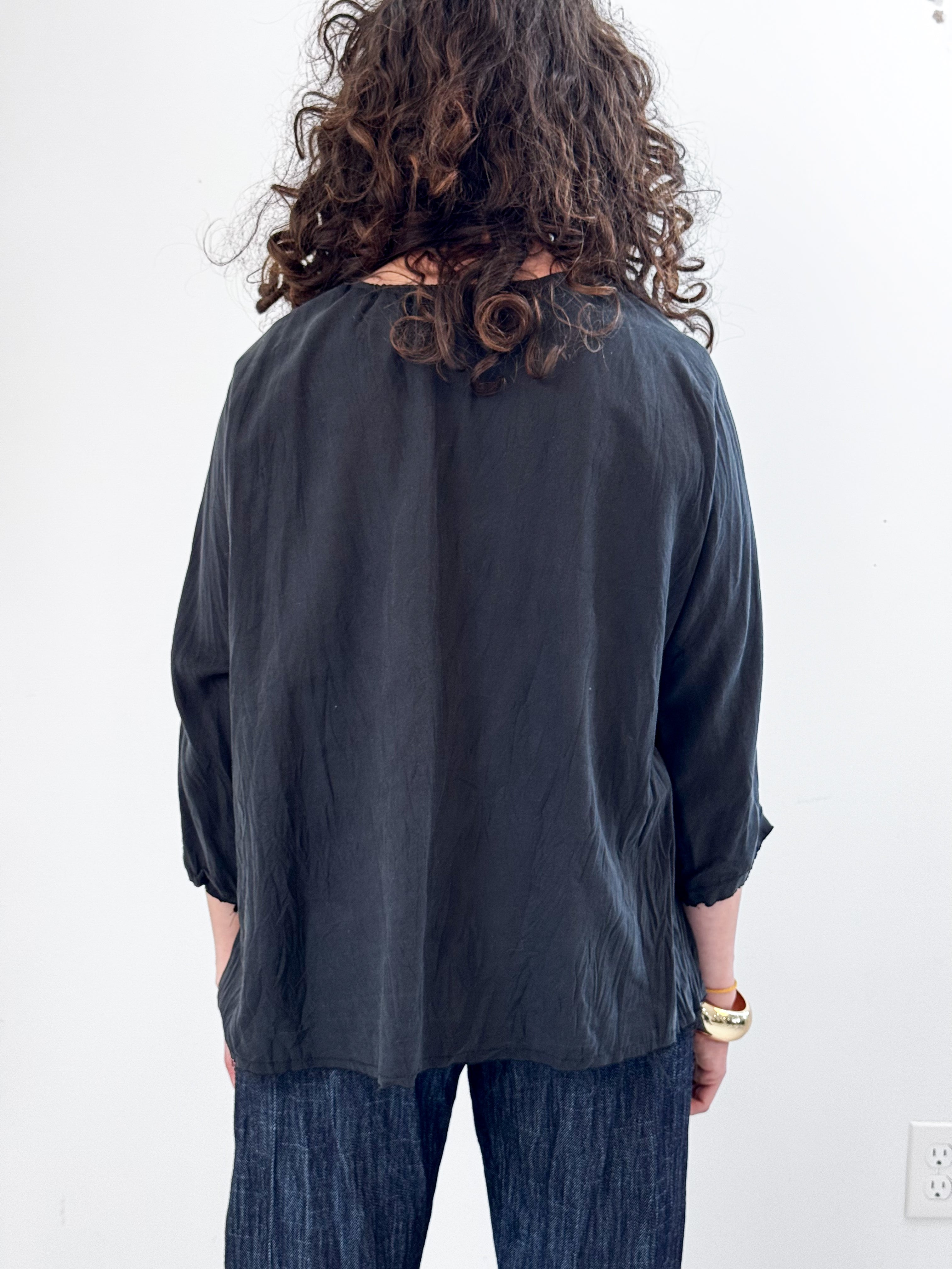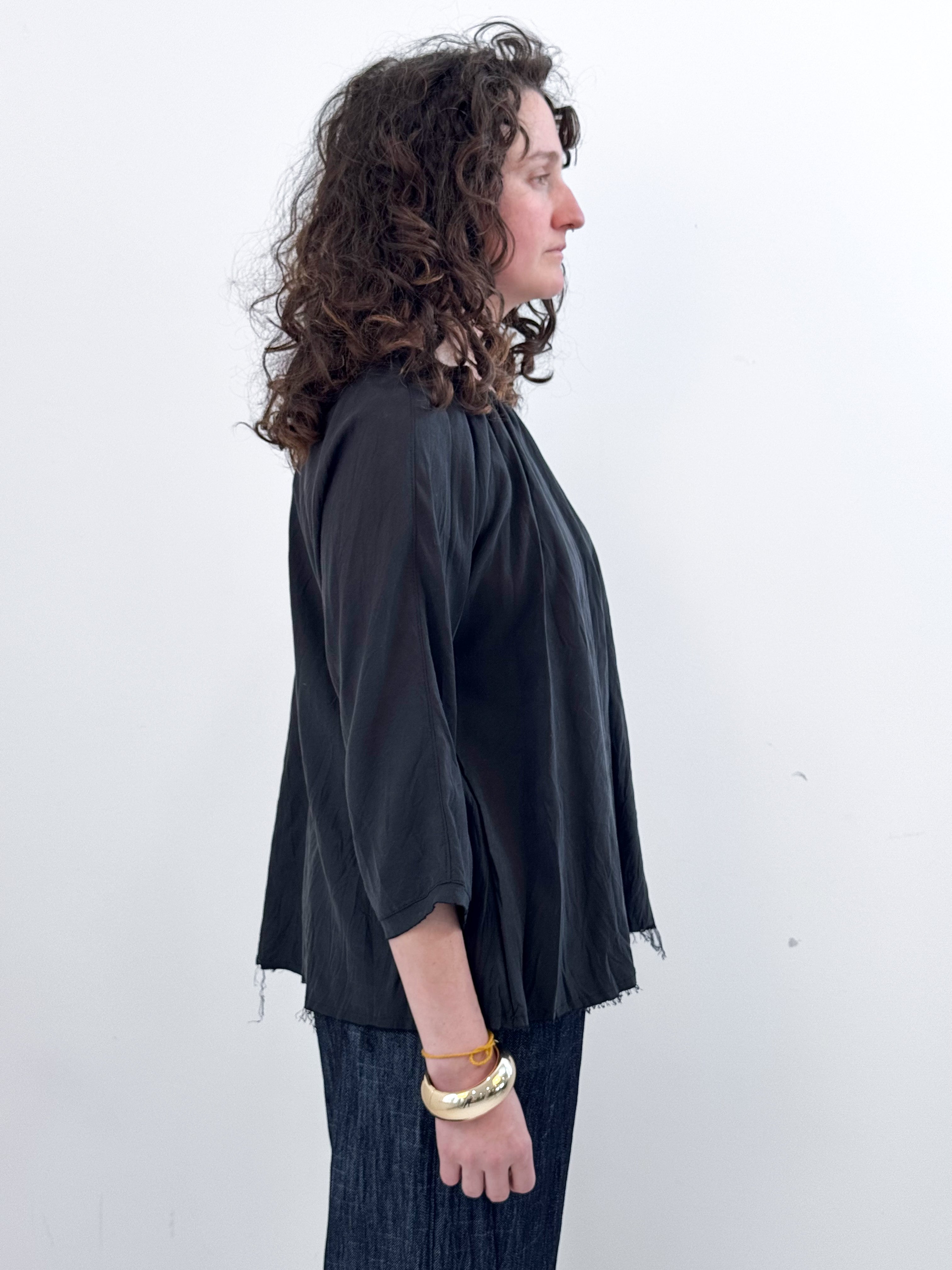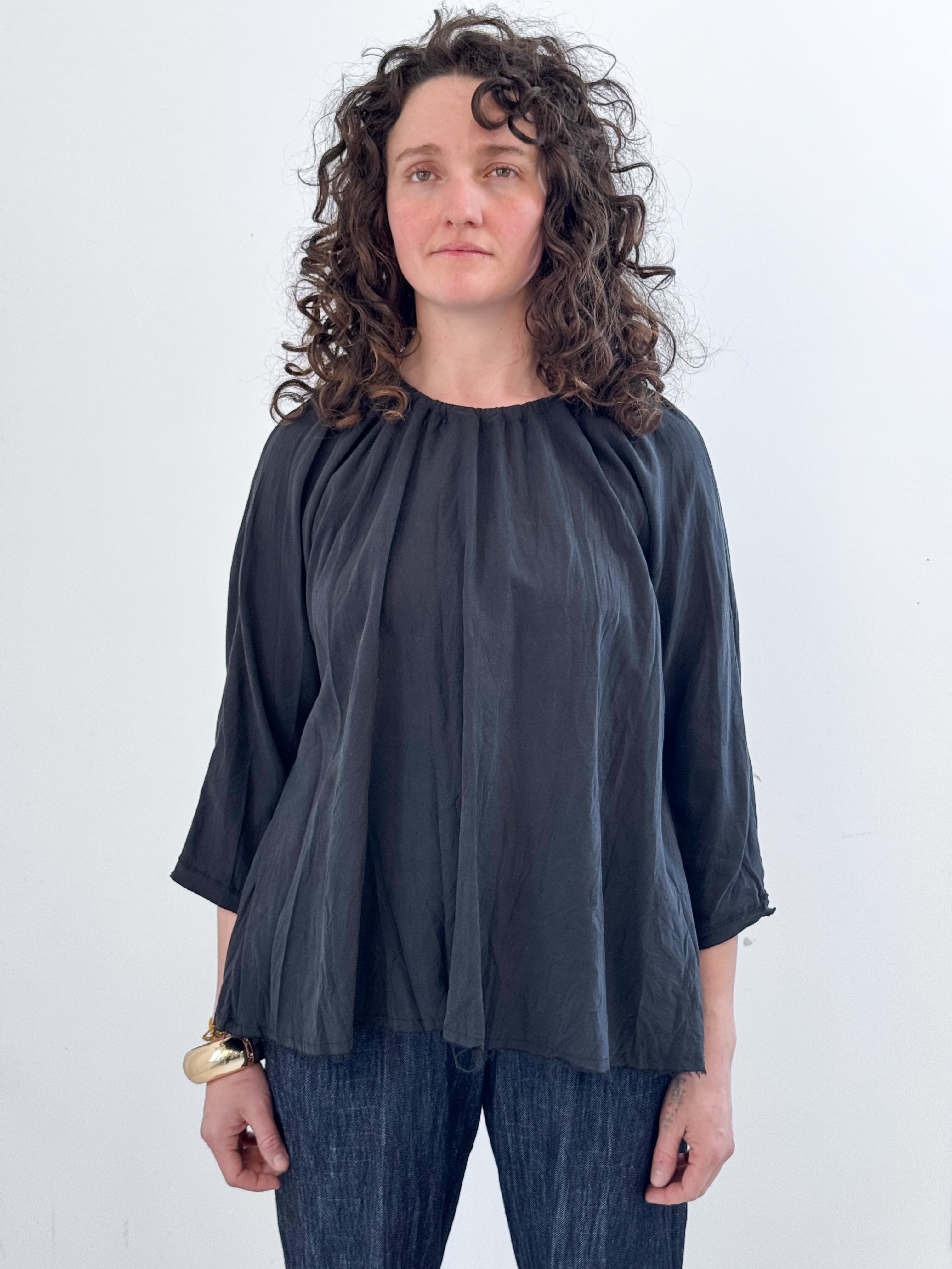 Fresh and feminine, the CARLA top is the perfect summer staple. Made with luxurious tencel twill, it features a gathered elastic neckline, raw edge at hem and generous fit.