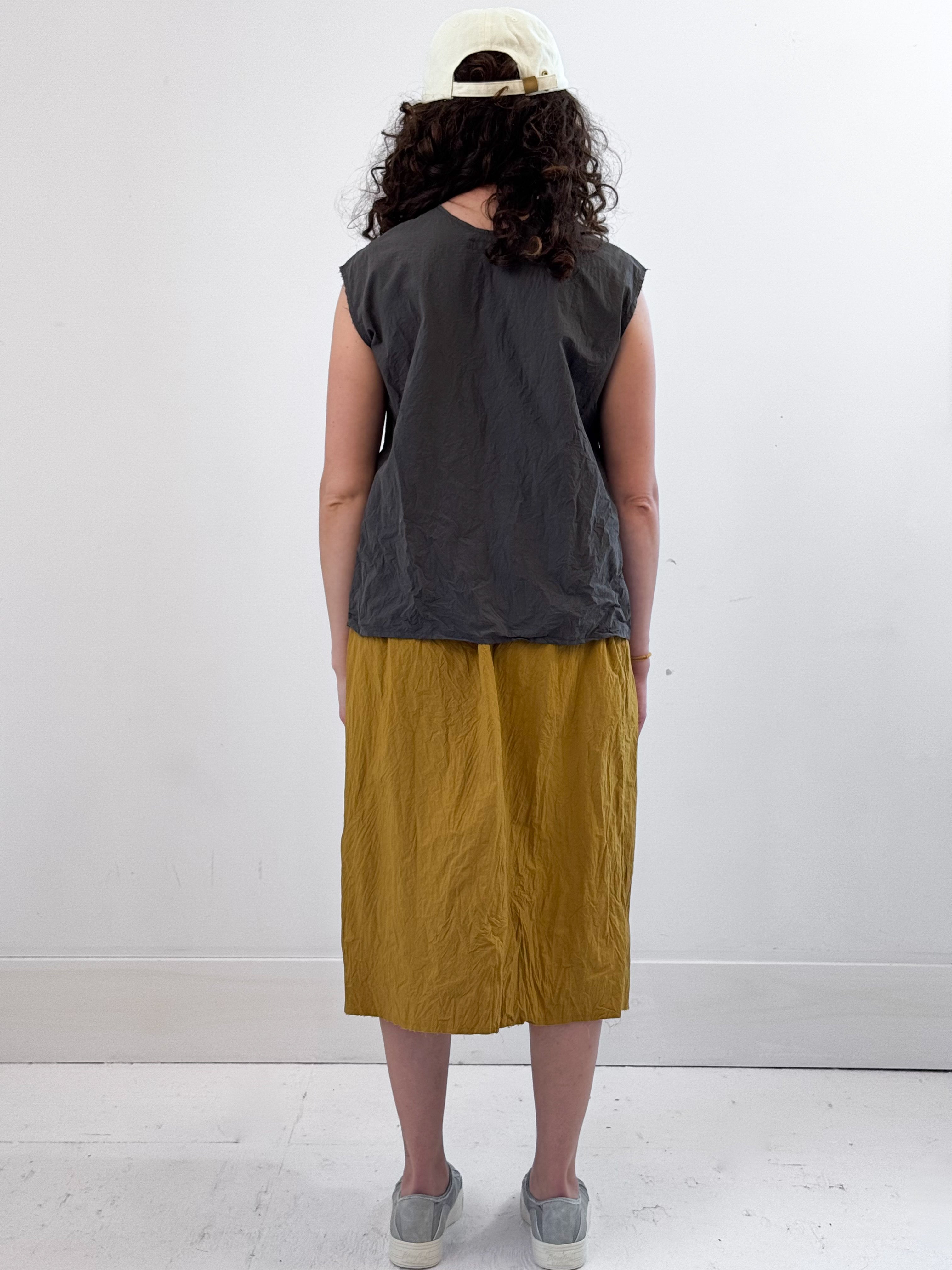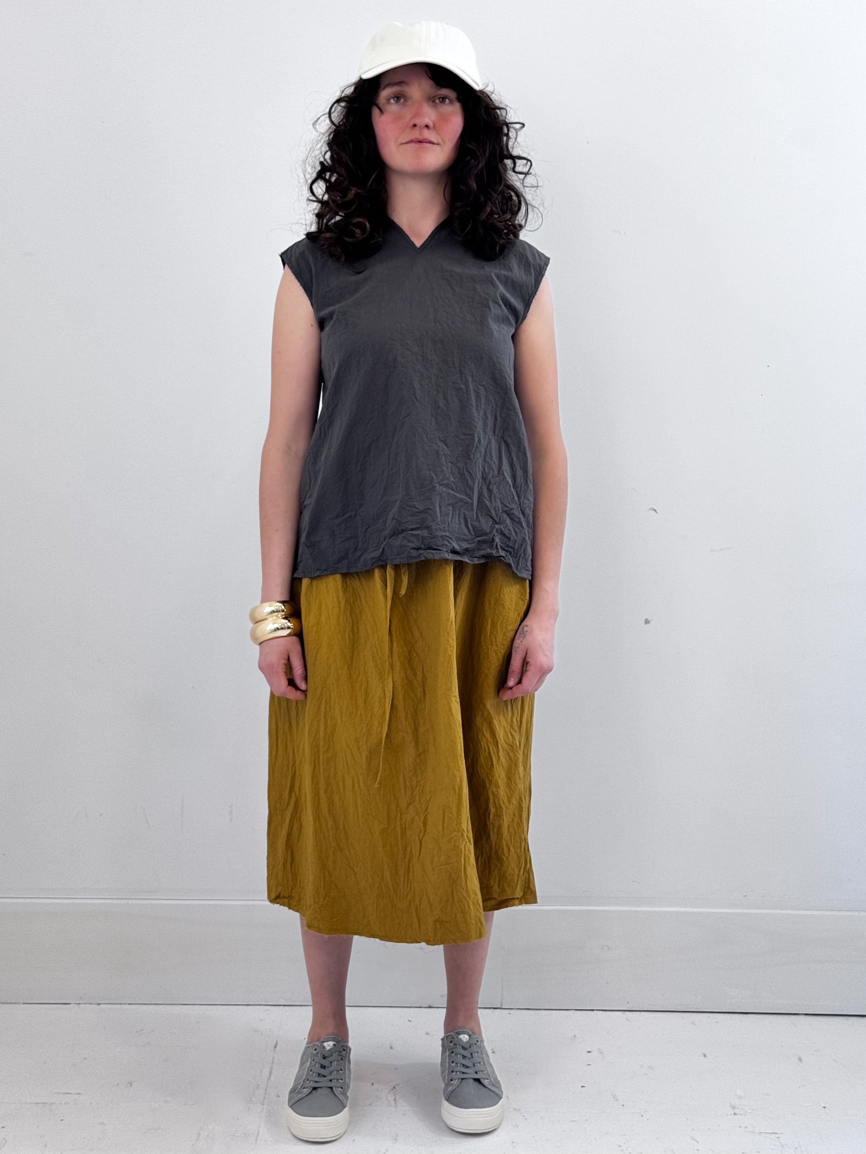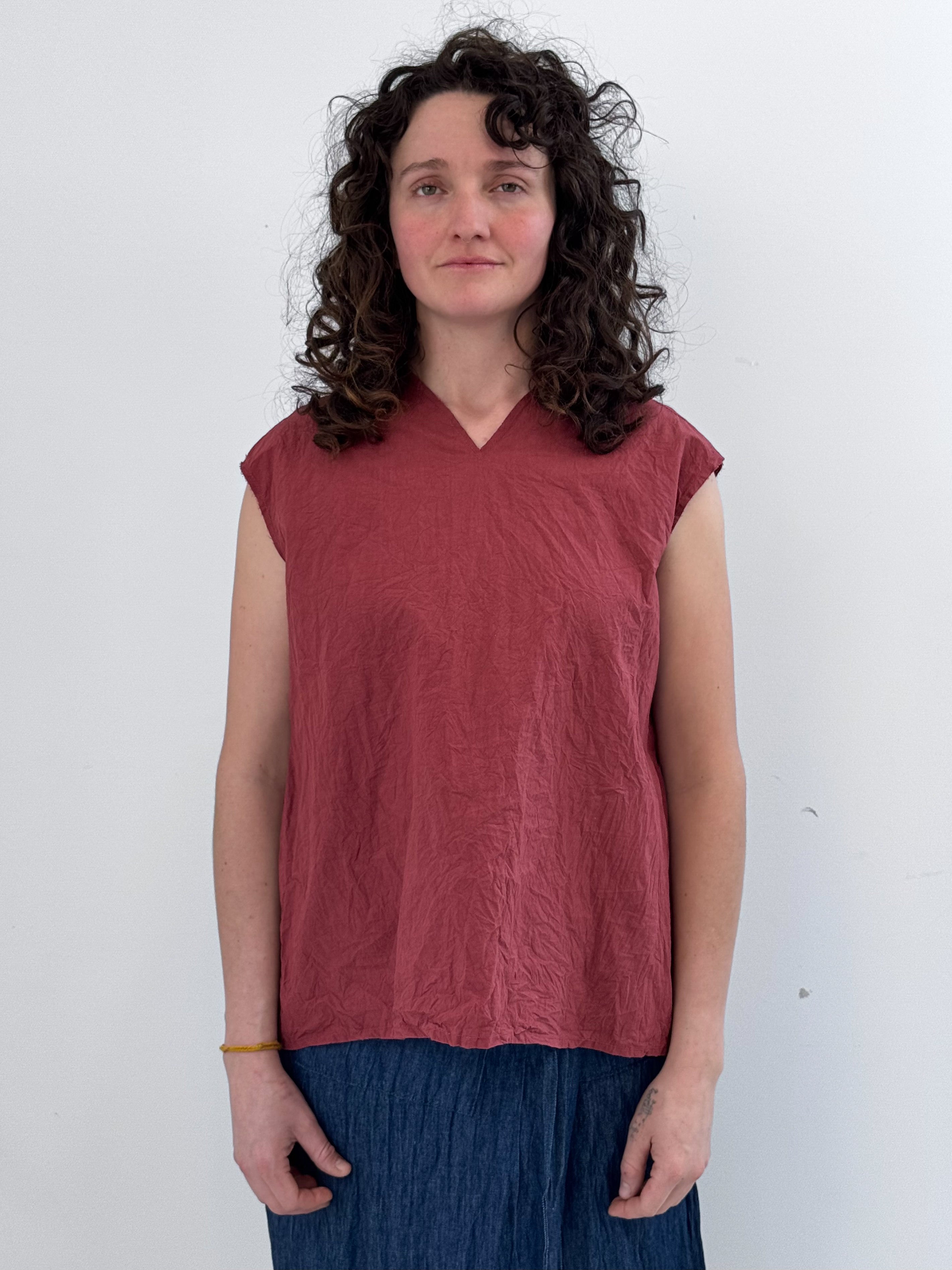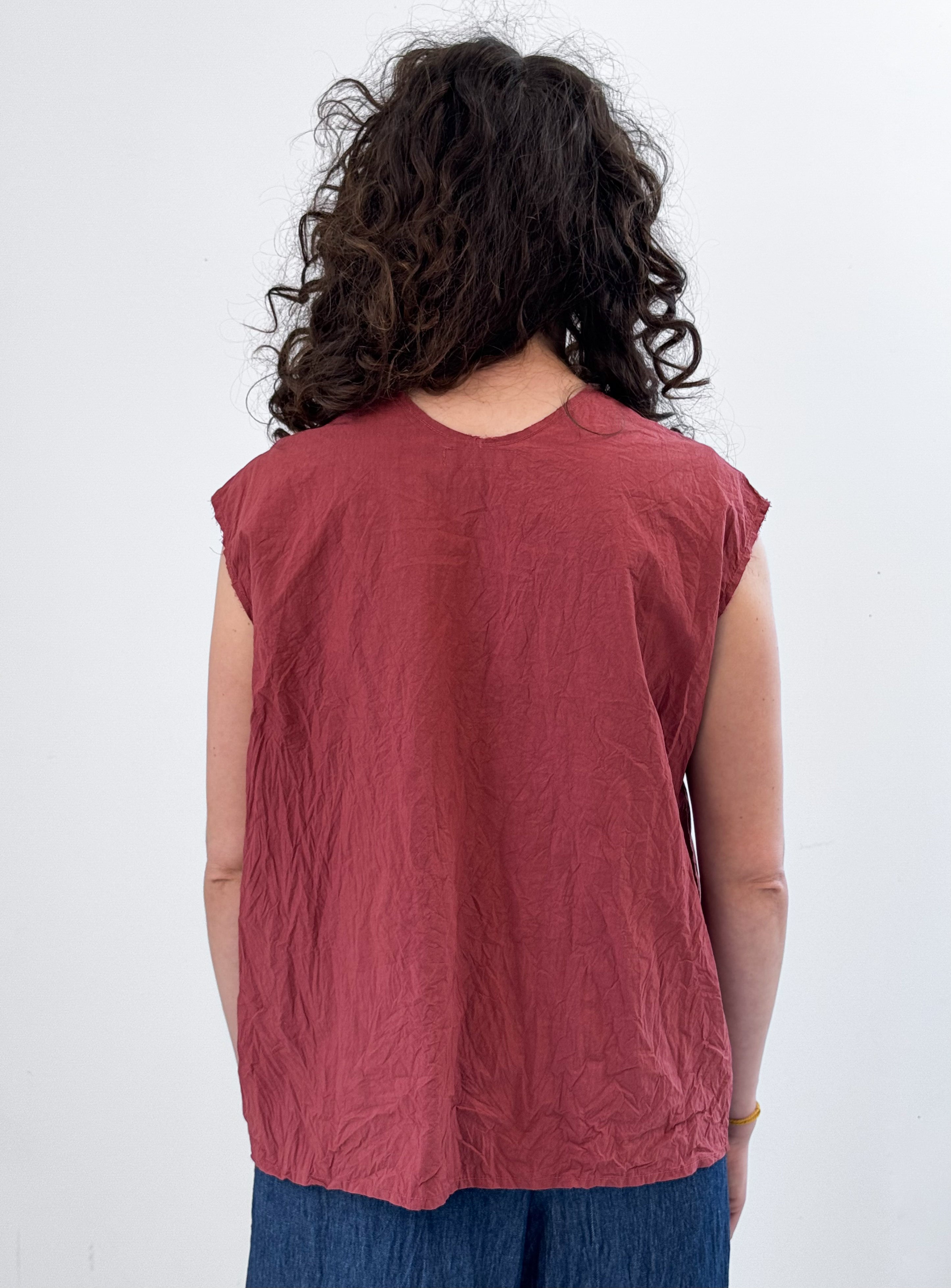 Upgrade your wardrobe with EDEN, an easy pre-washed top crafted from crisp paper cotton. Featuring an edgy high V-neck with raw edge at neck and sleeves
