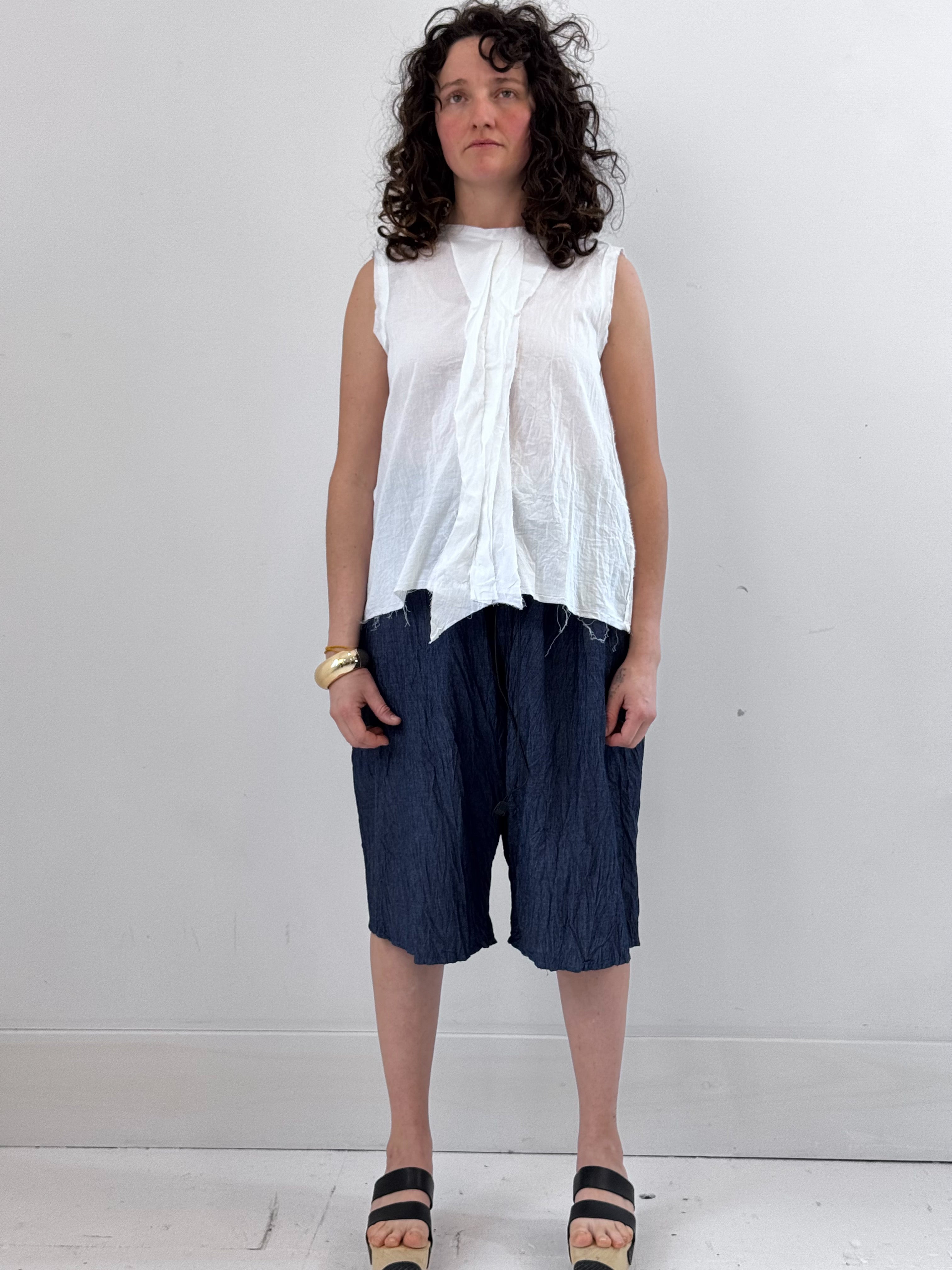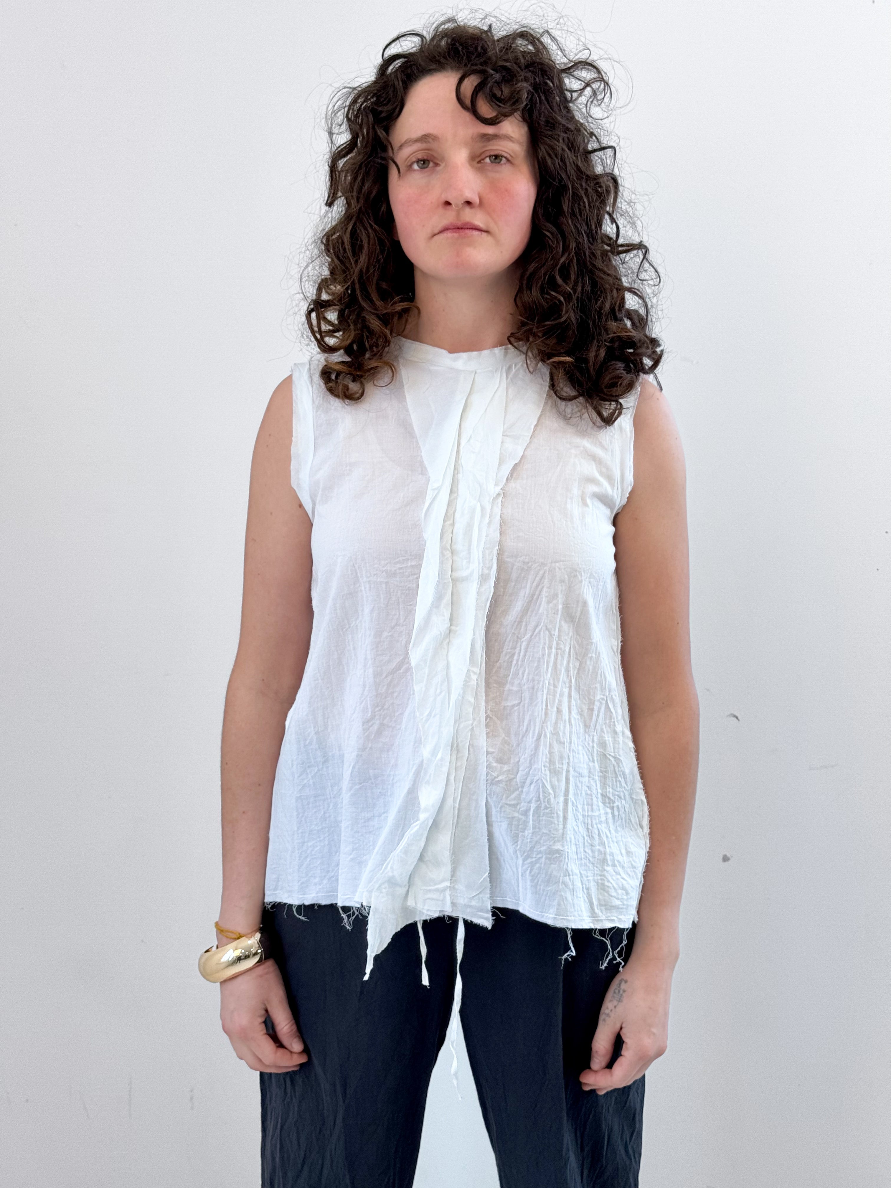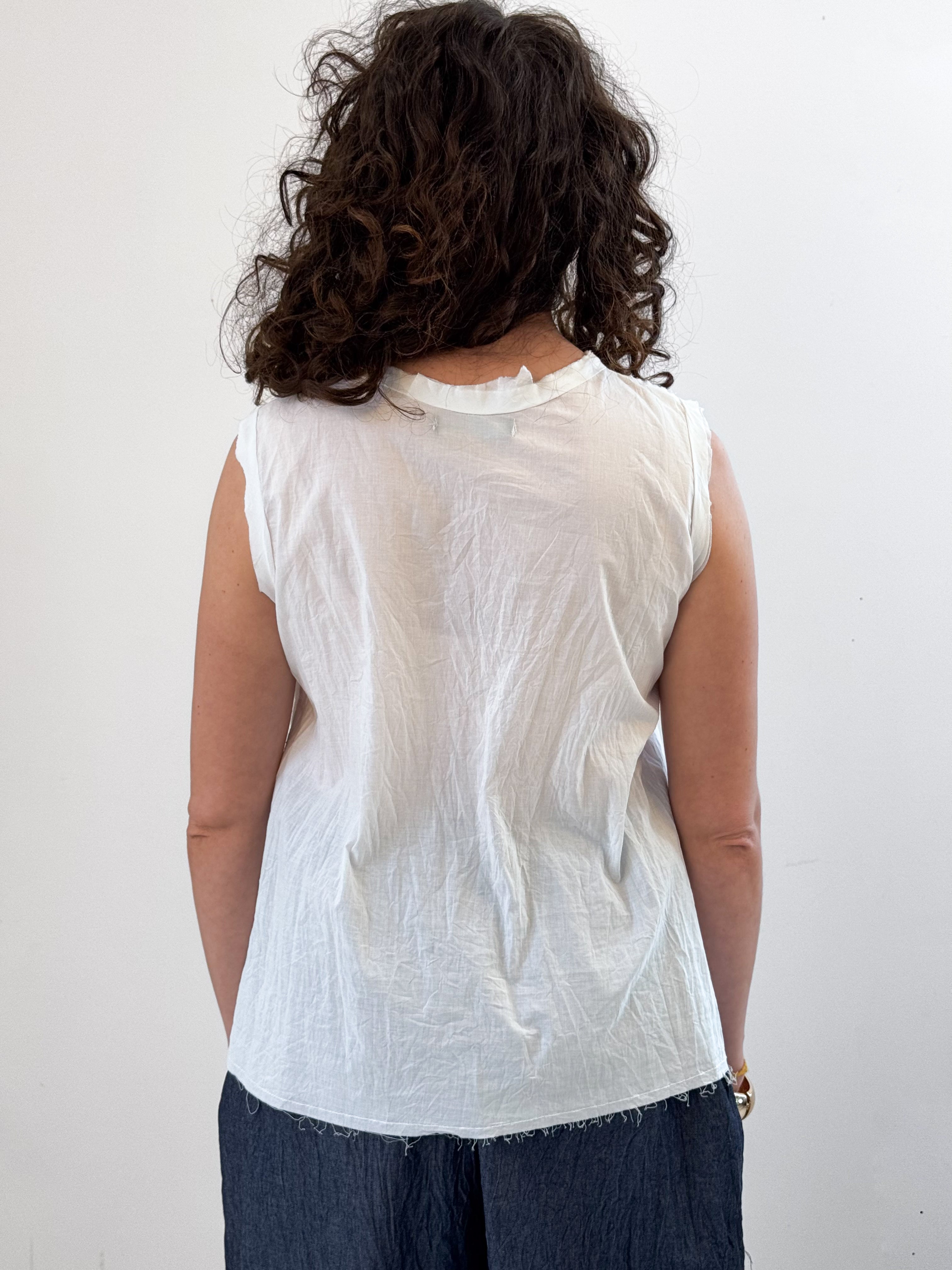 Fresh and feminine, the FLORA top is the perfect summer staple. Made with an airy washed cotton voile it features a raw edge front panel and raw edge at sleeves and hem. Pair it with denim or linen. Easy Breezy