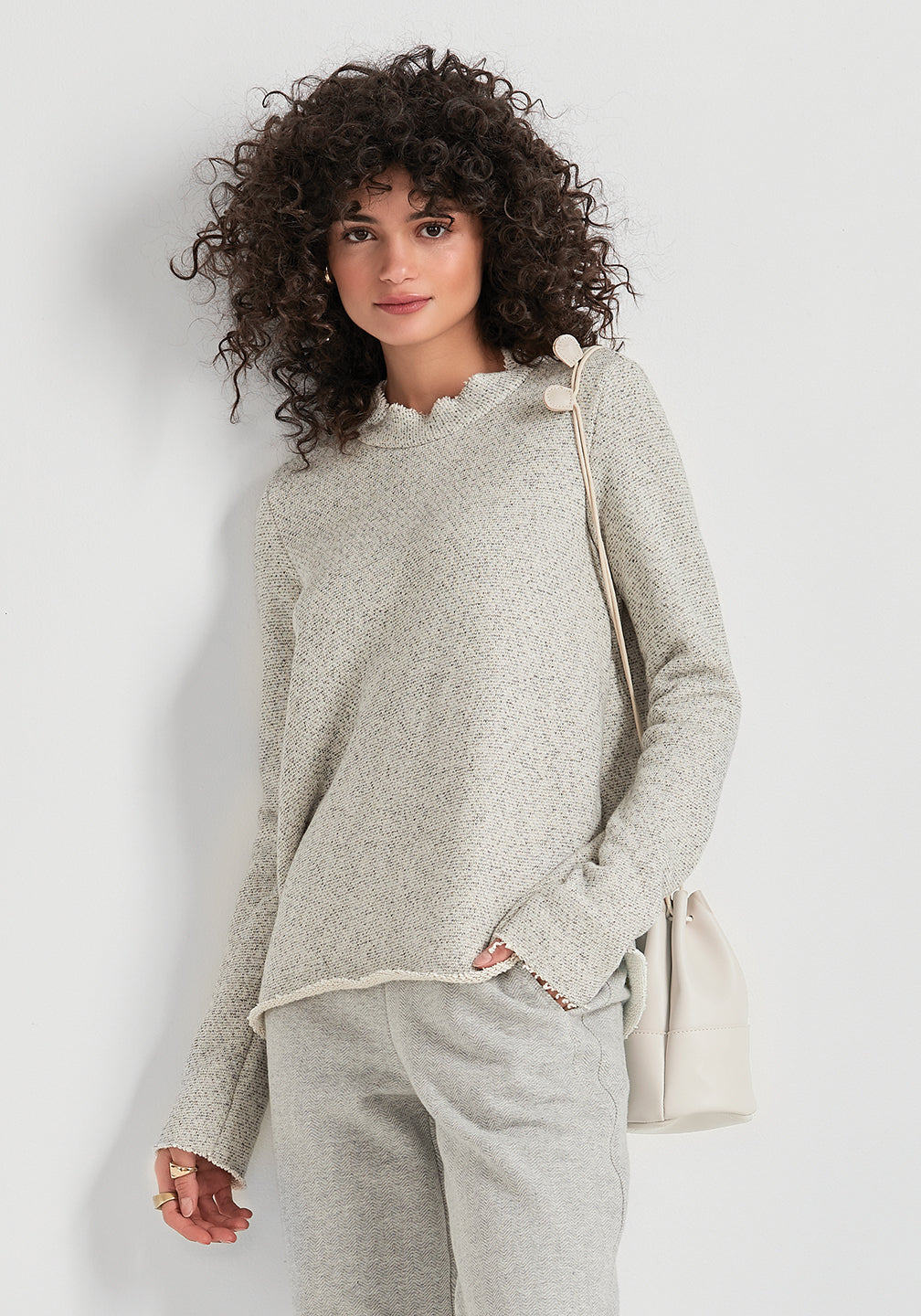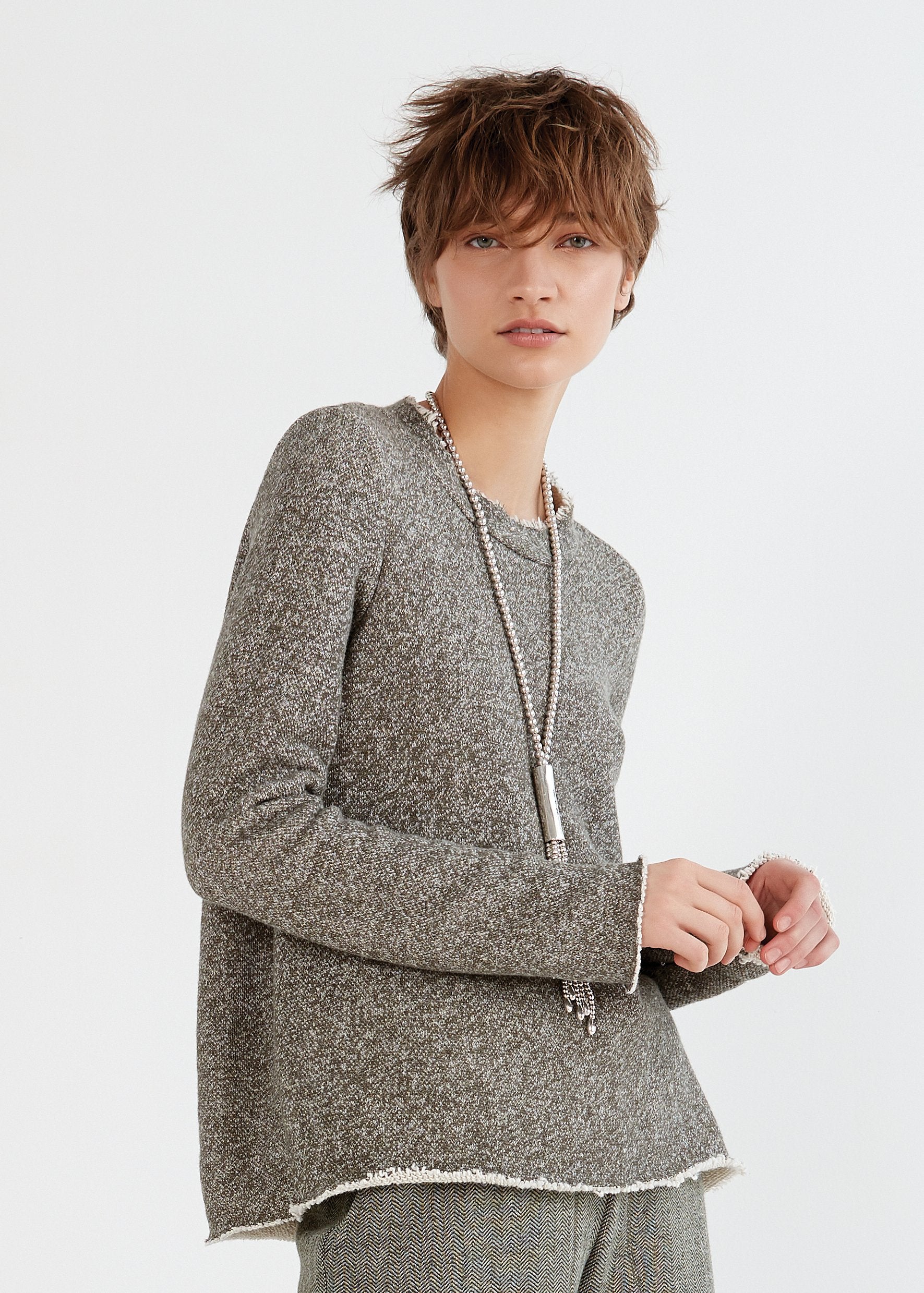 Cozy A line terry sweater with raw edge at sleeve, hem and collar