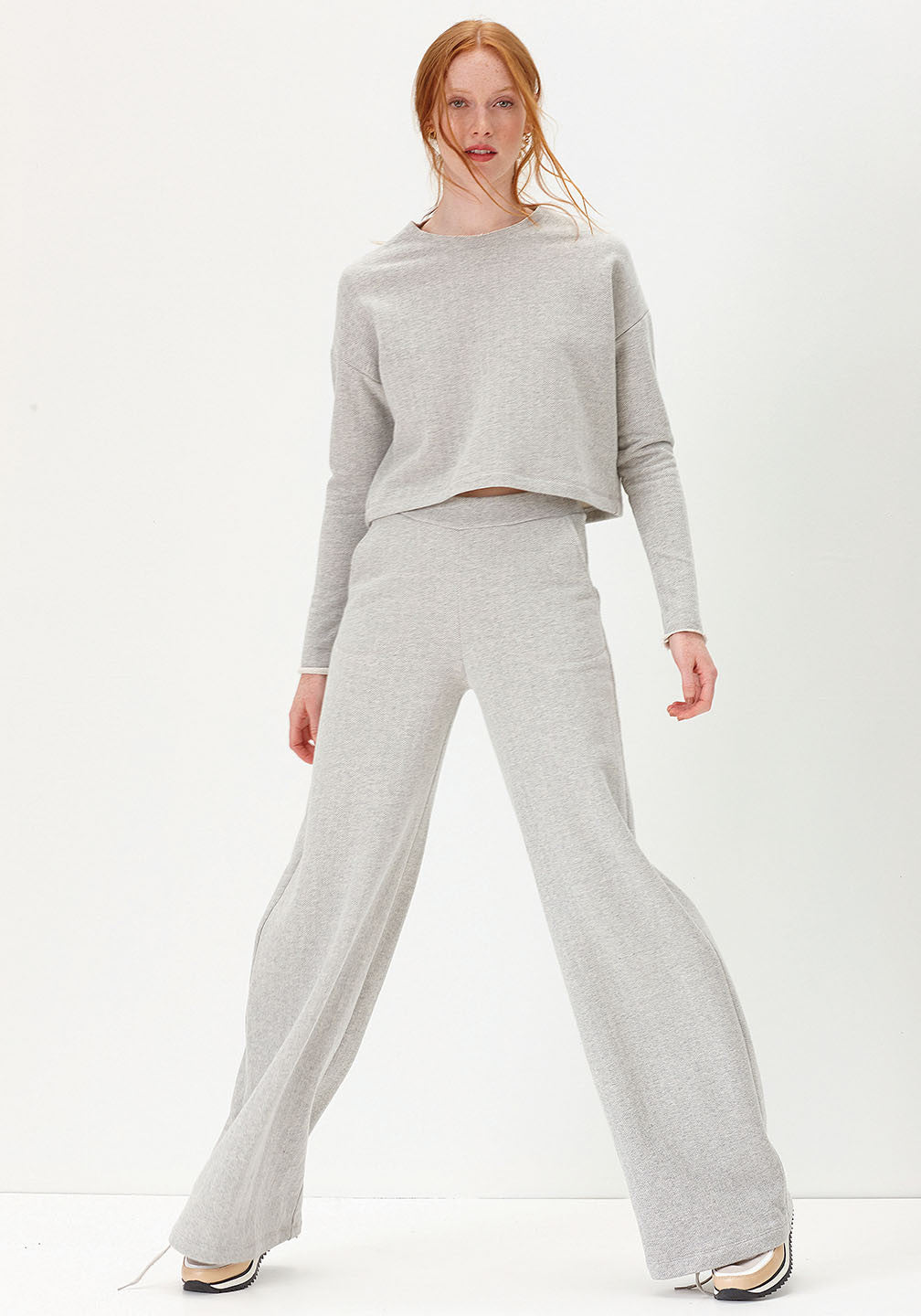 Unparalleled comfort and style with our MERRYL pants, featuring a luxuriously cozy wide leg design. Big loop terry version feature raw edge hem