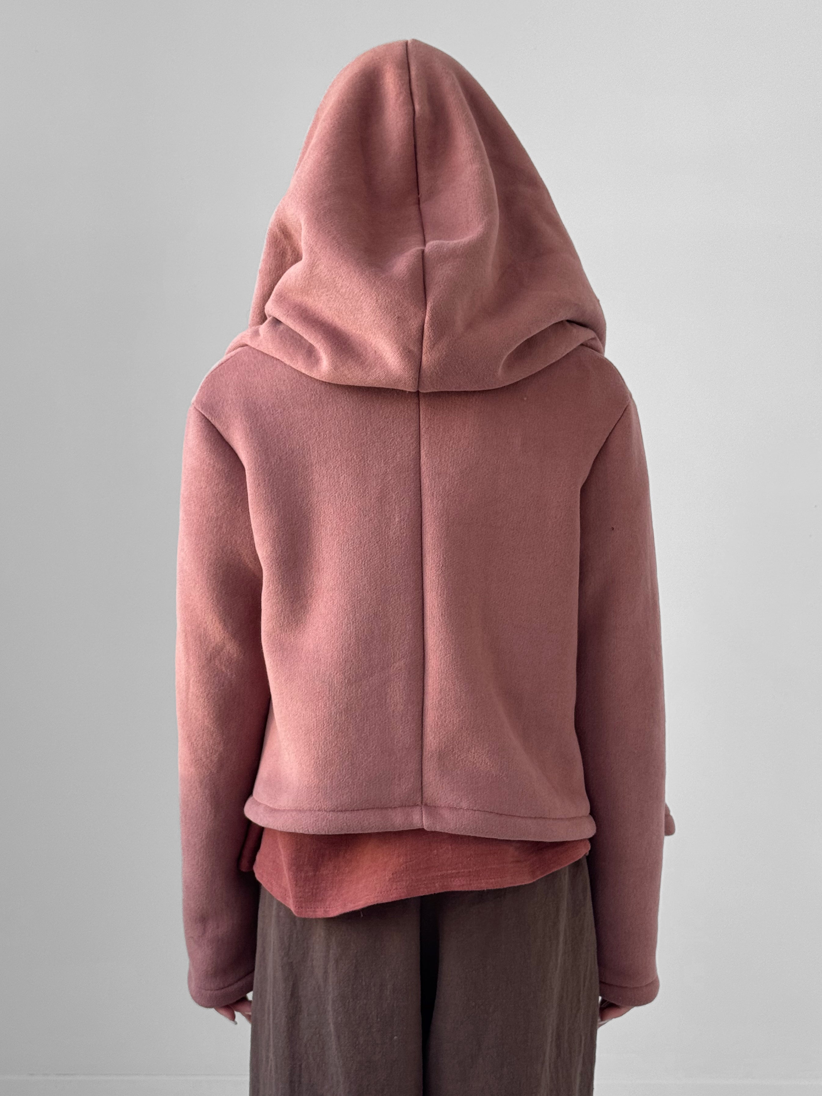 Relaxed sleeves and a softly cocooned shape make the Alder ideal for layering—comfortable yet considered. The oversized hood adds both function and drama, framing the face while enhancing the jacket’s sculptural presence. The rich texture of the velvet fleece adds depth and tactility, elevating everyday wear into something subtly luxurious.