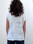 Raw silk top featuring a high V-neck, and a raw, edgy finish at the sleeves and neckline and hem.
